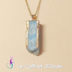 Collier géode quartz bleu avec chaîne dorée